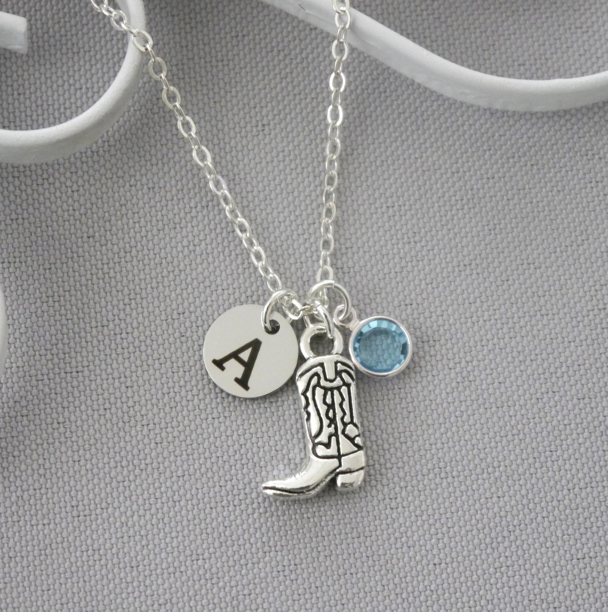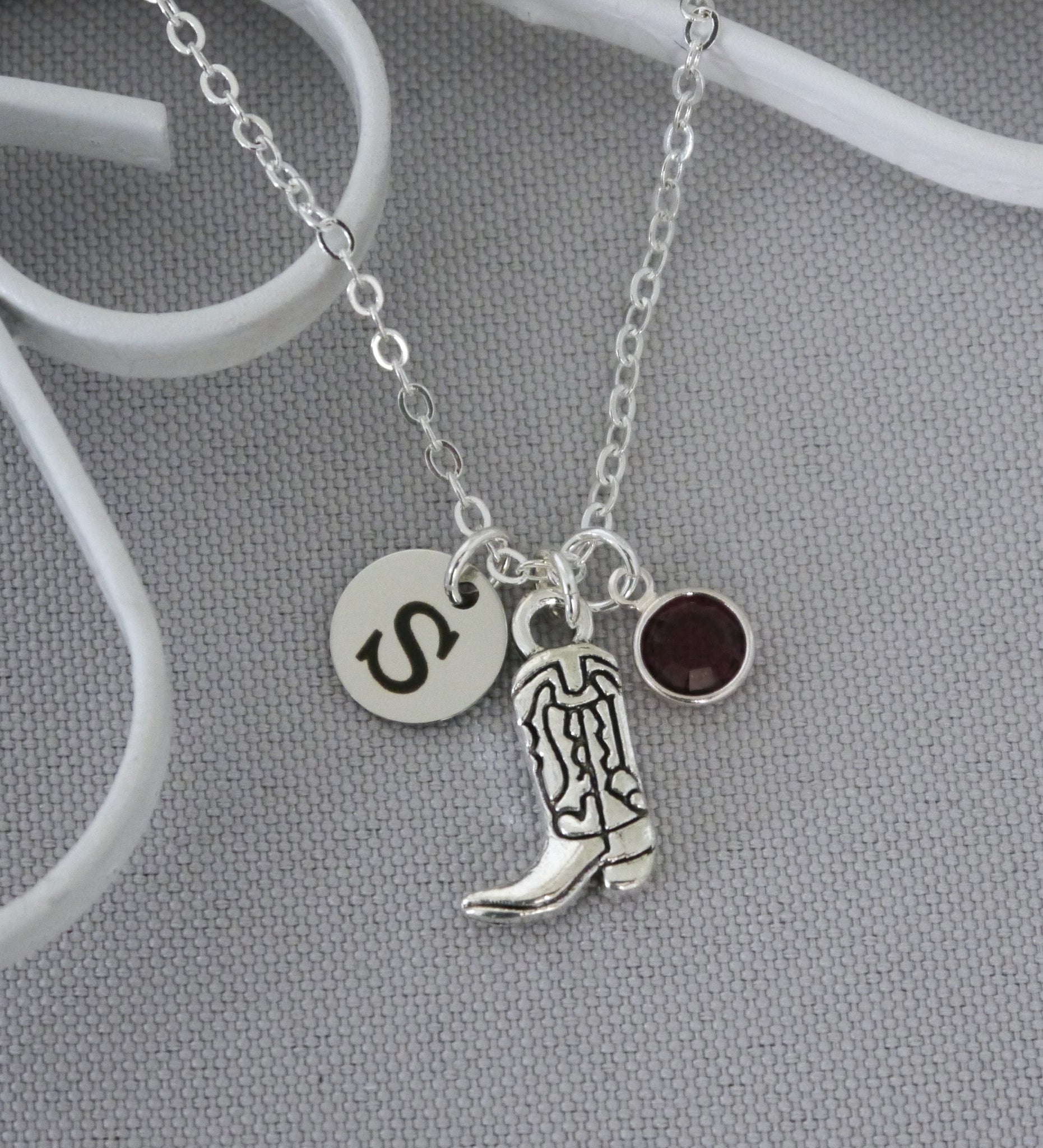 Cowgirl Boot Necklace - Initial Necklace - Birthstone