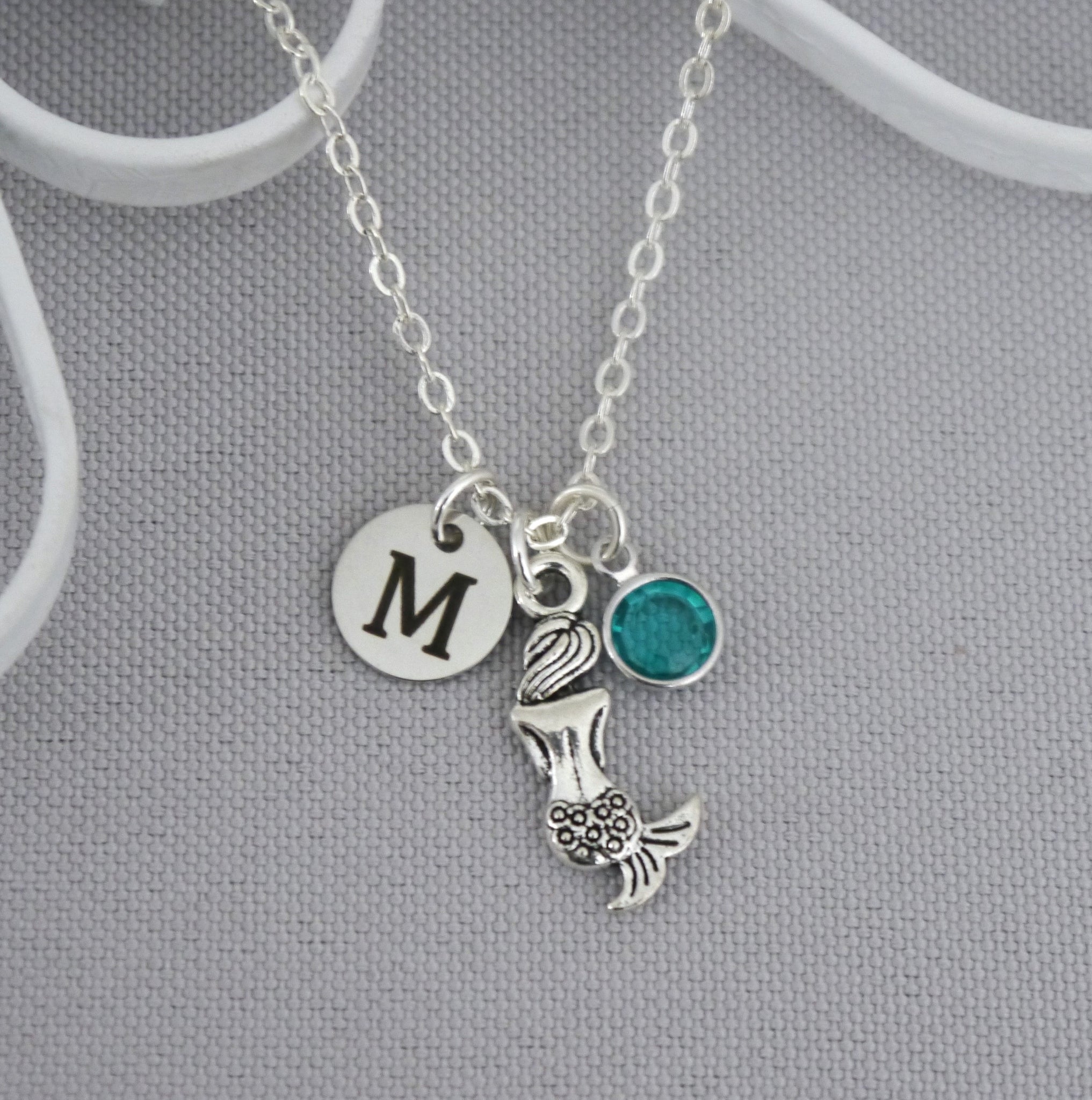 Mermaid Necklace - Initial Necklace - With Birthstone