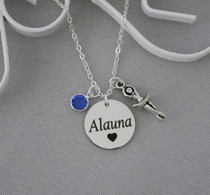 Custom Gymnast Necklace - Name Disc - Birthstone