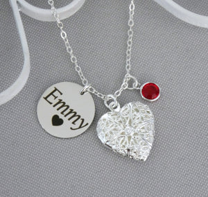 Ballerina Necklace - Custom Name Disc - Birthstone