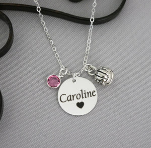 Volleyball Necklace - Custom Name Disc - Birthstone