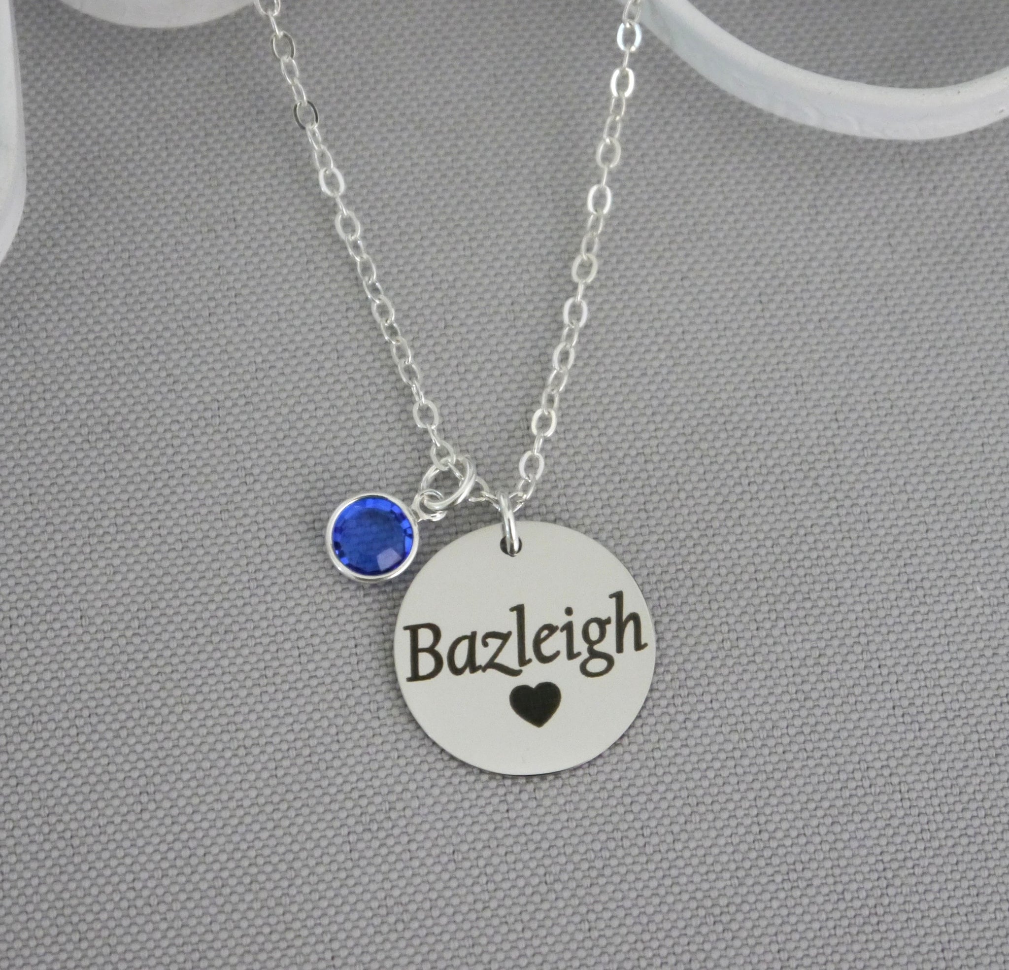 The personalized name necklace with birthstone makes a beautiful gift for girls and women and is comprised of: