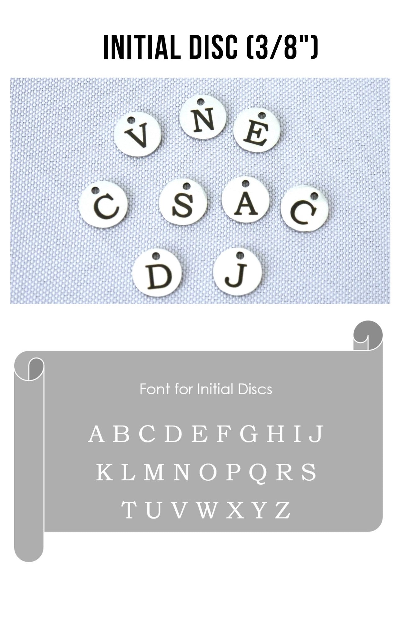 ❤ a tiny stainless steel disc engraved with one initial (approx. 3/8")